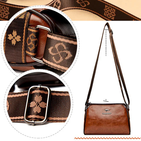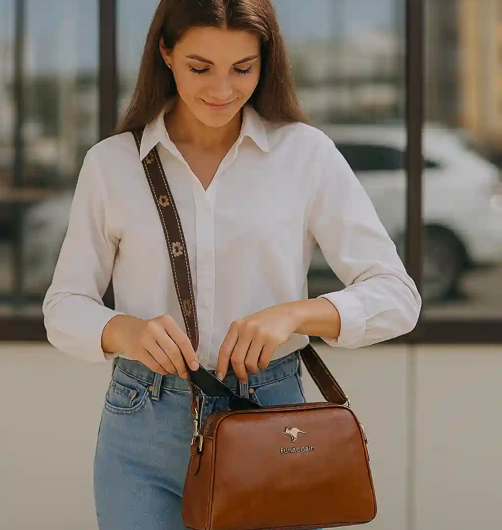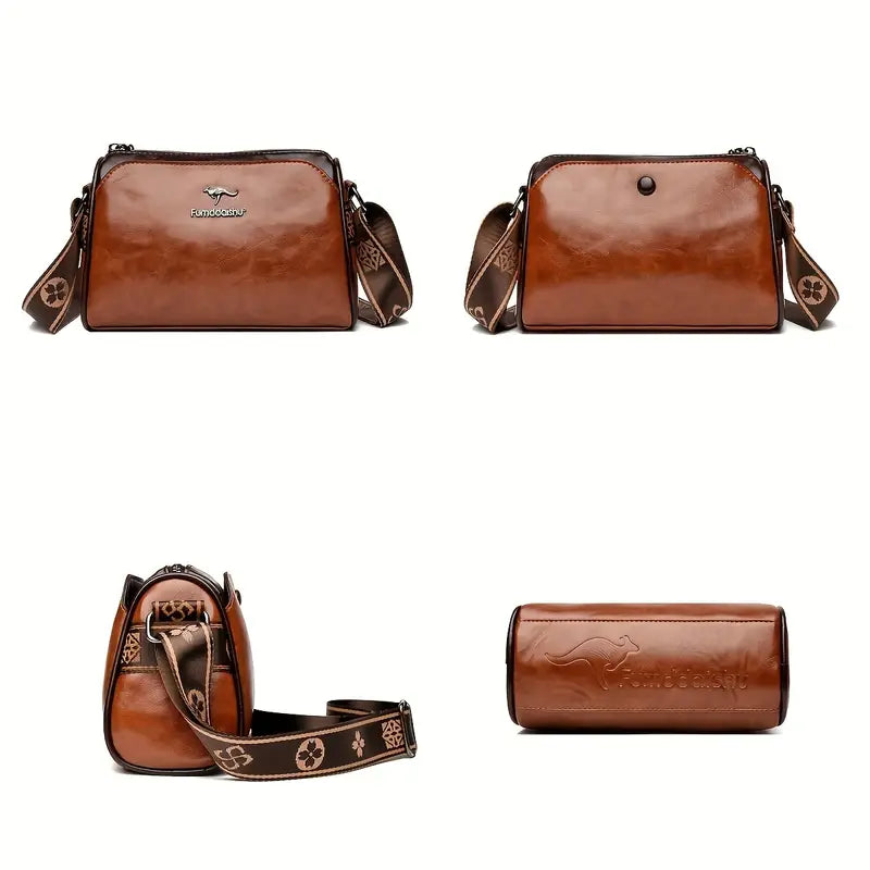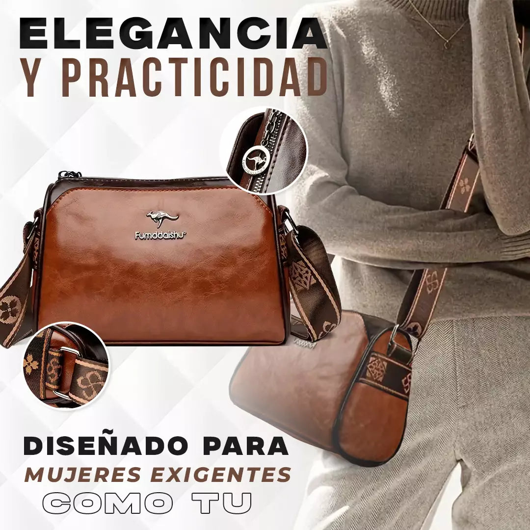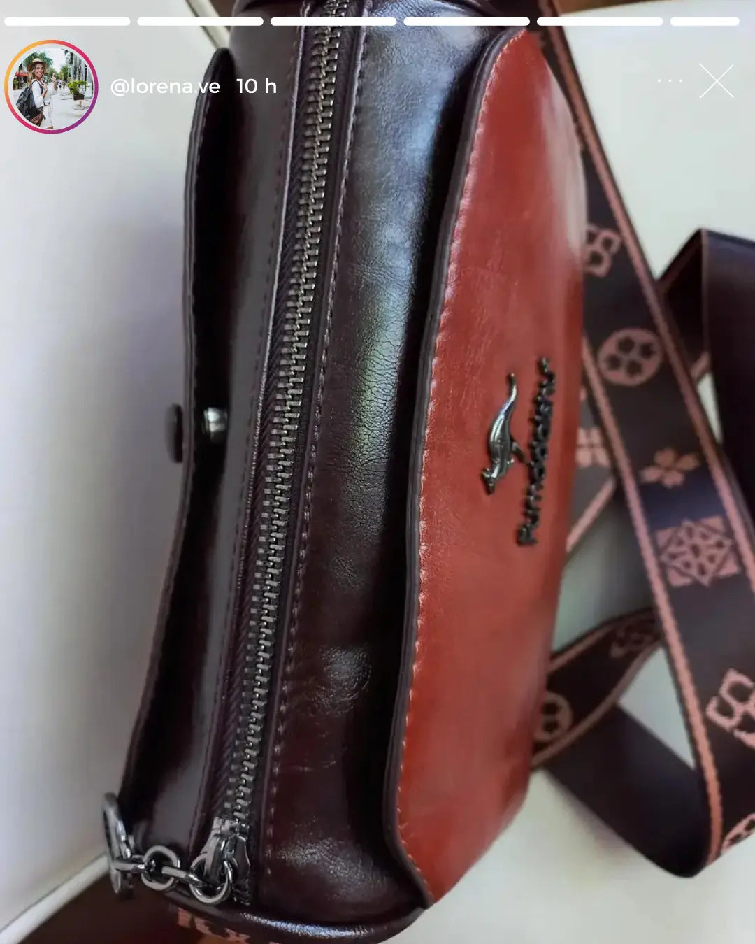 El bolso está fabricado con cuero sintético de alta calidad, resistente al desgaste, lo que garantiza una larga durabilidad.