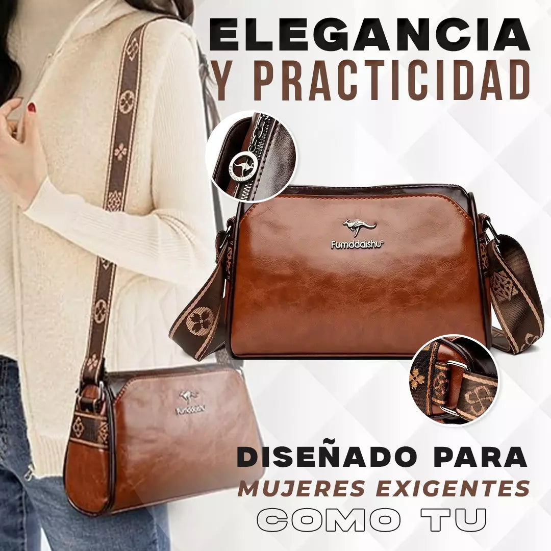 El bolso cuenta con varios compartimientos, ideales para guardar tus pertenencias esenciales de manera organizada y accesible.