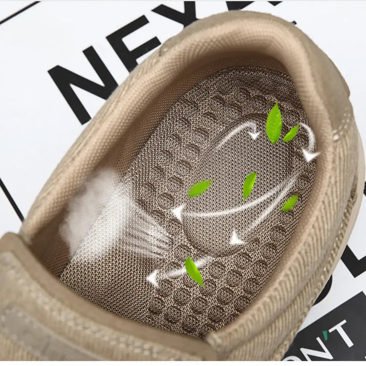 Nuestras zapatillas cuentan con materiales transpirables que permiten la circulación de aire, reduciendo la sudoración y manteniendo tus pies frescos y secos. Ideales para usar todo el día, sin preocuparte por la incomodidad del calor o la humedad.